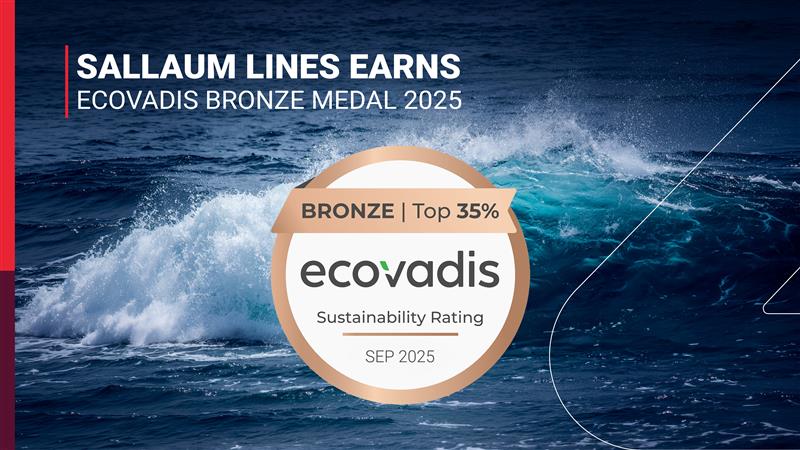 Sallaum Lines has received a Bronze Medal rating from EcoVadis for 2025, placing the company in the top 35% of businesses assessed globally across environmental, social, and governance criteria. EcoVadis is one of the most widely used third-party sustainability assessment platforms across global supply chains, with ratings referenced by customers and charterers when evaluating carrier partners.
